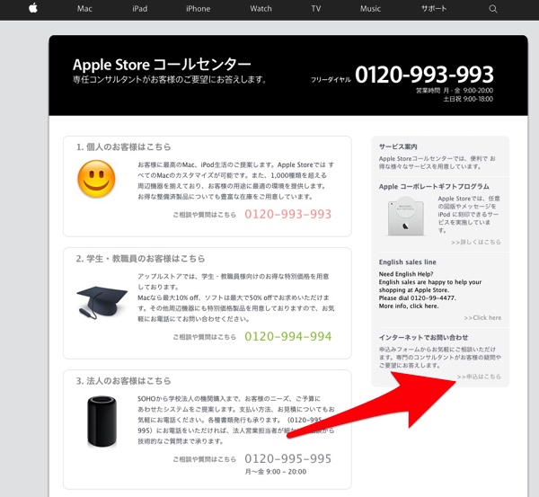 Apple StoreコールセンターHP