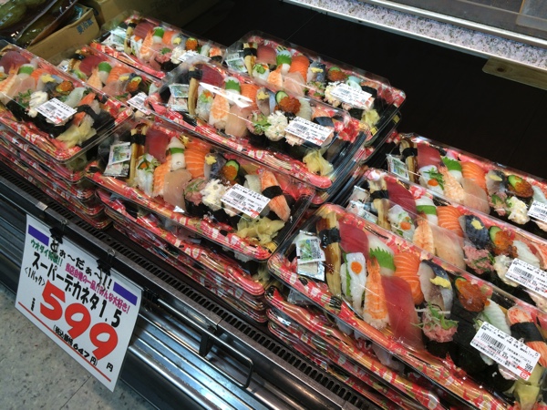 弁当類や寿司も激安。焼きそばは超大盛りで750円だし、寿司は具が相当大きいのに599円など。種類が少ないのでロスが少ないのも安い理由。色々考えられています。