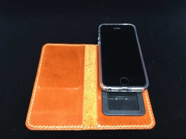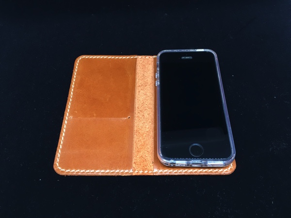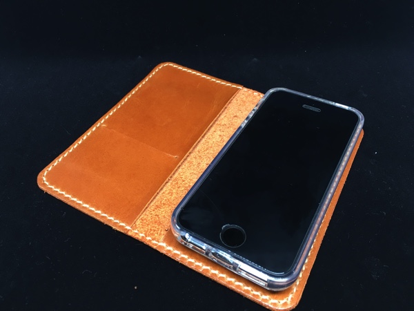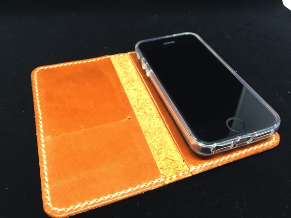 iPhoneSEに変えたので色々ケースをまた探し始めた先日、ビッグサイトで開催していたminneのハンドメイドマーケットに出店していたお店にiPhoneのよさ気な革ケースが置いてありました。iPhone5用も置いてありましたが裏にカメラレンズの穴が空いているためパス。アンドロイド用はサイズが様々なのでカメラレンズ穴は空いておらずスマホをスライドさせる仕様になっていたのですがiPhoneSEにはややサイズが大きすぎました。