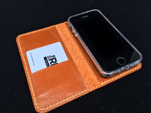 ヌメ革でサイズも理想の大きさ。まさにピタッとハマりました。以前使っていた革ケースは4sのサイズでオーダーしたものをそのまま使っていたので縦寸がギリギリでしたが今回は若干余裕があり、まさにジャストフィット。カードポケットも完璧。もうたまりません。かつスライド式なので写真を撮る際もすぐに撮れるようになりました。以前のケースはマジックテープで革ケース本体に直接くっつけていたので写真を撮影する際はその都度外さなくてはなりませんでしたが、このケースはそのままスライドさせるだけでOK。これは超絶便利。当時はこんなスライドパネルはなかったのですが時代の進化はありがたい。
