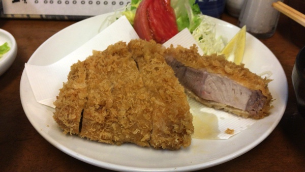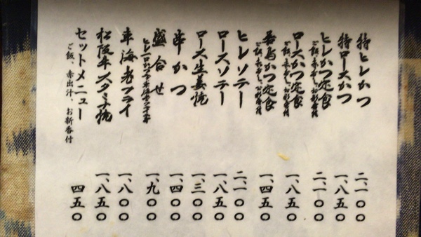 今回は折角なので特ロースカツとご飯、赤だし、新香の付いたセットを頼みました。注文してから20分、やっと待望の極上とんかつにありつくことができました。中心部がほんのりピンク色の絶妙の揚げ具合。まずはソースをかけていただきました。ん!美味い。肉汁たっぷりですがしつこくなく甘みがあります。次は塩とレモンでいただきましたがこちらはさらに肉の味がわかって美味い。とんかつで唸ったのは久々。とんかつとご飯などのセットで2千円を超えますが価格相応、いやむしろお値打ちというべきでしょうか。ここまでのクオリティのとんかつをこの場所でこの価格で提供するのは老舗だからできることでしょう。