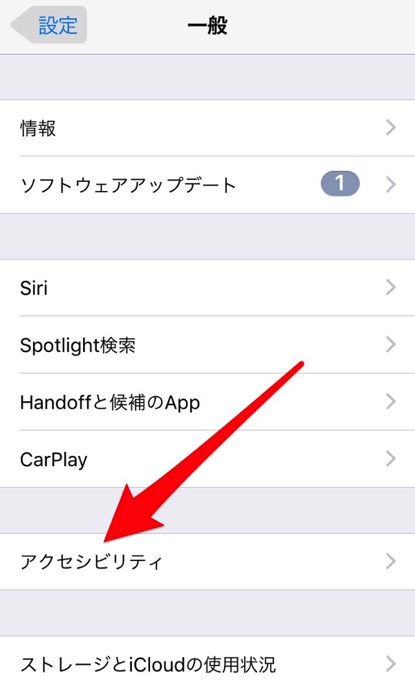 アクセシビリティをタップ(下にスクロール)