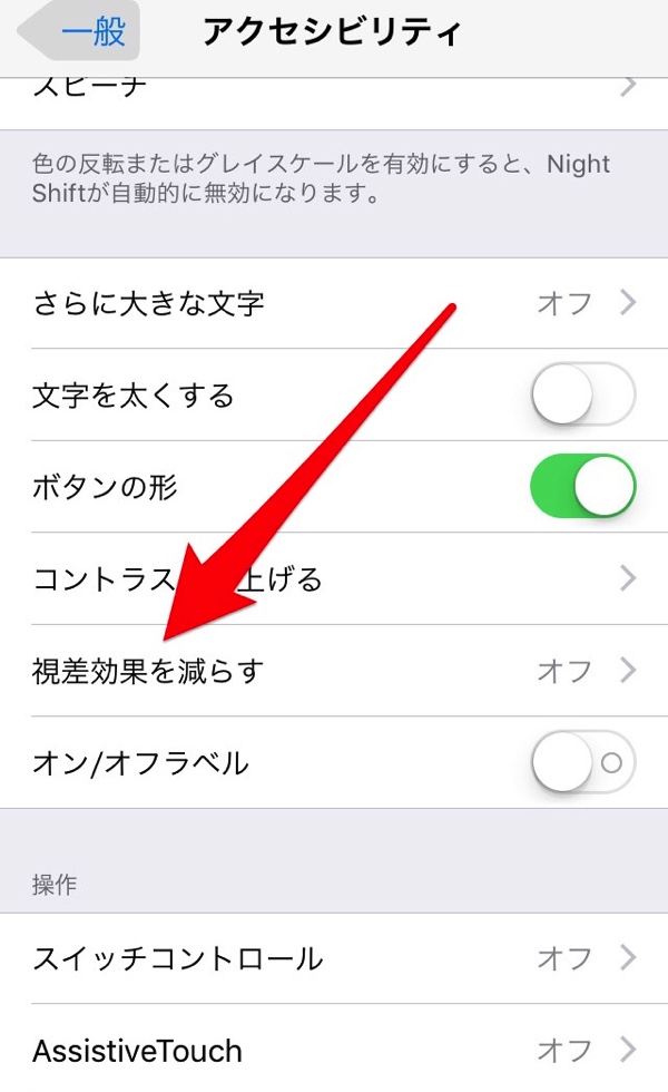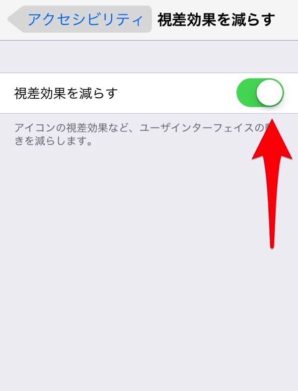 視差効果を減らすのボタンを右側にスライド