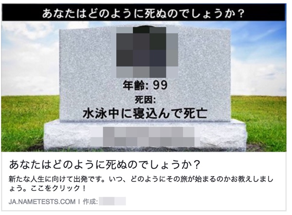また最近流行っている名前診断系のサービス。「あなたの血管にはどんな血が流れている?」とか「あなたはどのように死ぬのでしょうか?」などちょっと興味をそそられるような内容となっております。