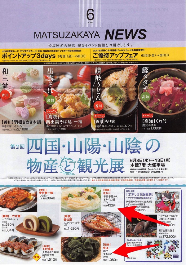 これらが手に入る四国・山陽・山陰の物産と観光展は6月8日(水)〜13日(月)まで松坂屋名古屋店の8階催事場で開催いたしますので、どうぞお見逃しなく!