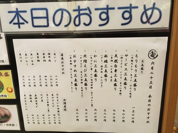 今日のおすすめに記載されている寿司からいくつか注文すればハズレはないと思います。