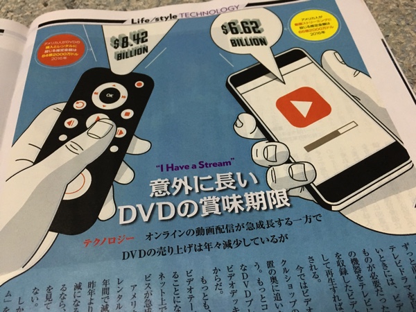 オンラインの動画配信が急成長する一方でDVDの売上は減少しているがアメリカでは未だにDVDの購入・レンタルに約84億ドルの市場があるとのこと。もっと急速にオンラインの動画配信が普及するかと思われましたが意外とDVDの息の根が長い。DMMの社長はレンタルビデオ店が予想外に長く生き残っていると仰っていましたので日本の市場も同様でしょう。