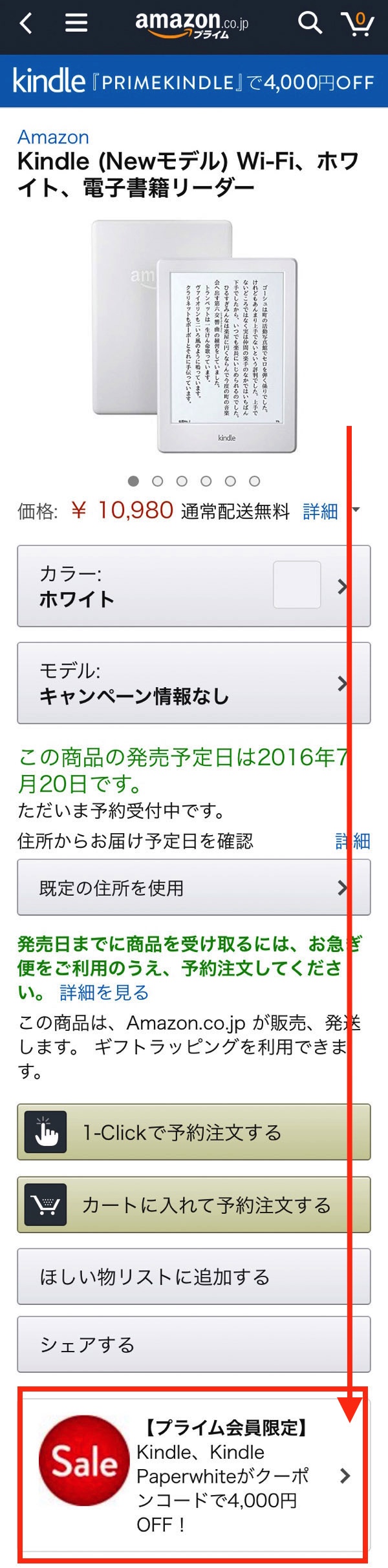 そのままスクロールしてプライム会員限定の案内を表示させます。