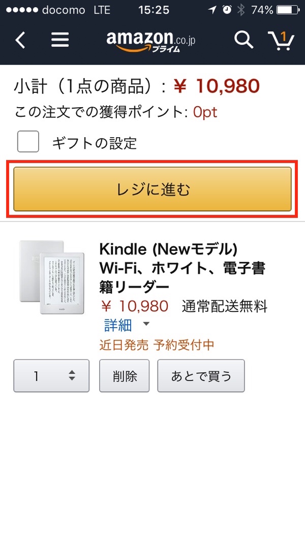 レジに進むをタップ。この時点では割引が適用されておりませんが大丈夫。