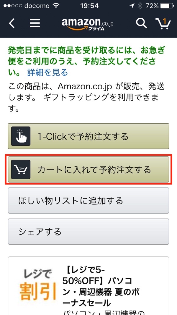 レジに進むをタップ。この時点では割引が適用されておりませんが大丈夫。
