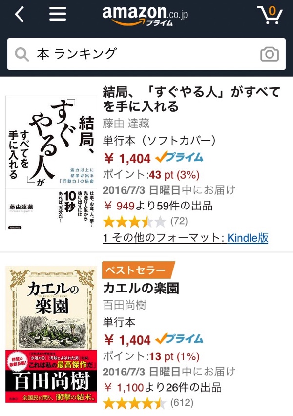 友人からこの本はオススメ!と言われたらAmazonで検索してポチッとすれば翌日には読めます。以前なら本屋へ行って無ければ注文して一週間以上待って、また本屋へ取りに行かなければならなかったので、それを考えれば時間も有効に使えますしありがたい。