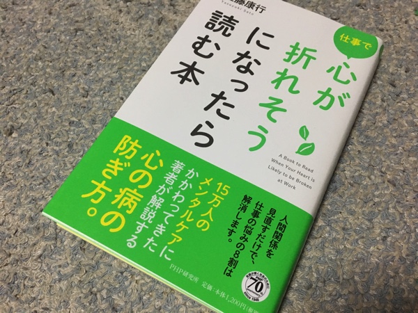 そんな時に、愛知の文具王フミヒロさんと食事をする機会があり、オススメ本をいただきました。フミヒロさんと会う時はいつもお互いのオススメ本を3冊交換してます。フミヒロさんは読書量が半端ないのでオススメしてくれる本はどれも素晴らしい本ばかり。その中の一冊に今回の「仕事で心が折れそうになったら読む本」が入ってました。仕事のことはほとんどFBにもあげてないのに私の心理状態を察知するその能力にも恐れ入ります。