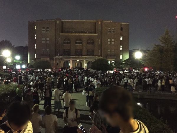 同日24日(日)20時過ぎの様子。今までに、こんな鶴舞公園みたことない。