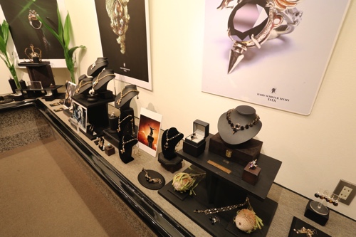 ごくありふれた服を着ていても、テリー氏のジュエリーを身につけるとパッと華やかになり一気にステージが上がります。言い換えれば身につける人を選ぶジュエリーかもしれません。