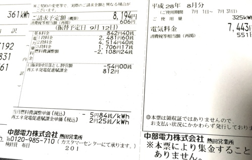 今年も7月からつけっぱなしにしております。電気代は冷蔵庫を新型に変えたこともあり7月は前年より大幅に安くなりました。普段の月と比べてもたった10%ほど上がっただけでした。8月は猛暑だったこともあり7月と比べると751円弱高くなりました。ただし他の要素もあるためすべてクーラーの電気代の増とは限りません。