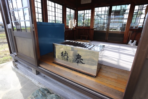 祠の中に賽銭箱はありますが、ガラス戸があり普段は閉じています。