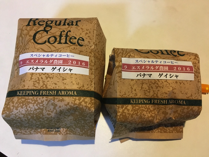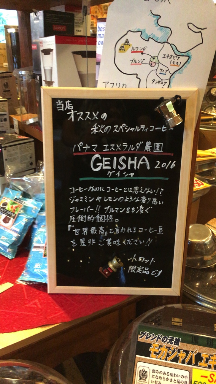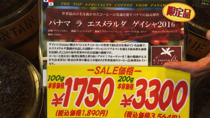貴重な豆である「ゲイシャ」が自宅の近所にある珈琲店でわずかですが限定販売されました。今回販売していたエススメラルダ農園の「ゲイシャ」は100グラム1,700円なので、スタバで飲む価格の約10分の1で飲める計算になります。もちろんスタバと全く同じではありませんが「ゲイシャ」種には間違いありません。
