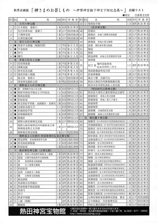 熱田神宮のHPにはなぜかこの秋季企画展が掲載されておりません。ググってもでできませんのでパンフレットを掲載しておきます。