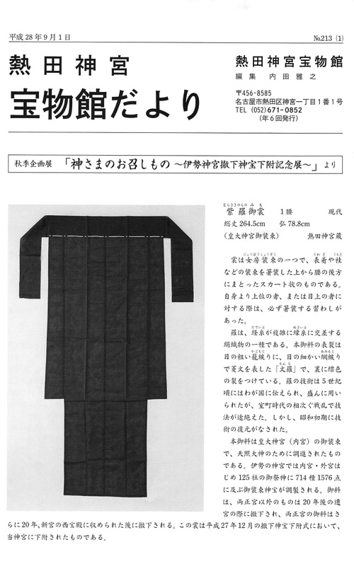 問い合わせ 熱田神宮宝物館 TEL 052−671−0852