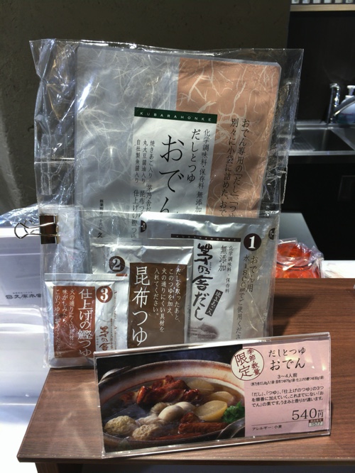 また今の季節はおでん用のだしとつゆを限定販売しております。我が家の娘たちはおでんがあまり好きではないので買いませんが、おでん好きな方にはオススメのだしセット。これで作ったおてんを試食させてもらいましたがめちゃ美味しかった。