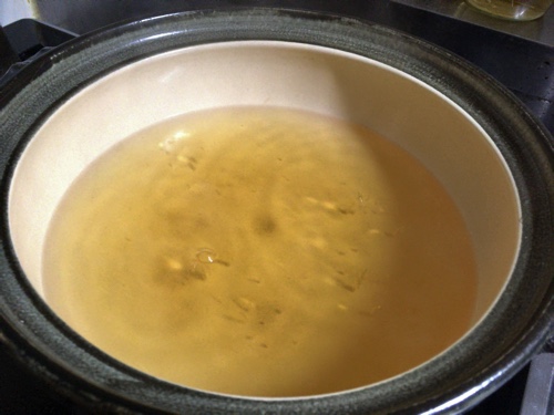 2〜3分煮出すだけで黄金色のだしができあがります。