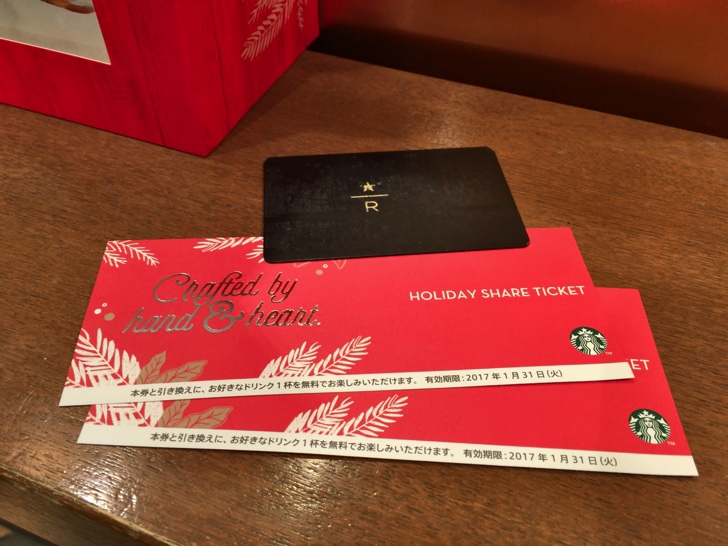 この冬もスターバックスのプリペイドカードに5,000円チャージする毎に1,000円分の一杯無料チケットがもらえる季節がやってきました。毎年この時期にキャンペーンがあり、2016年の配布期間は10月26日(水)〜12月25日(日)、チケットの有効期限は2017年1月末までとなっております。