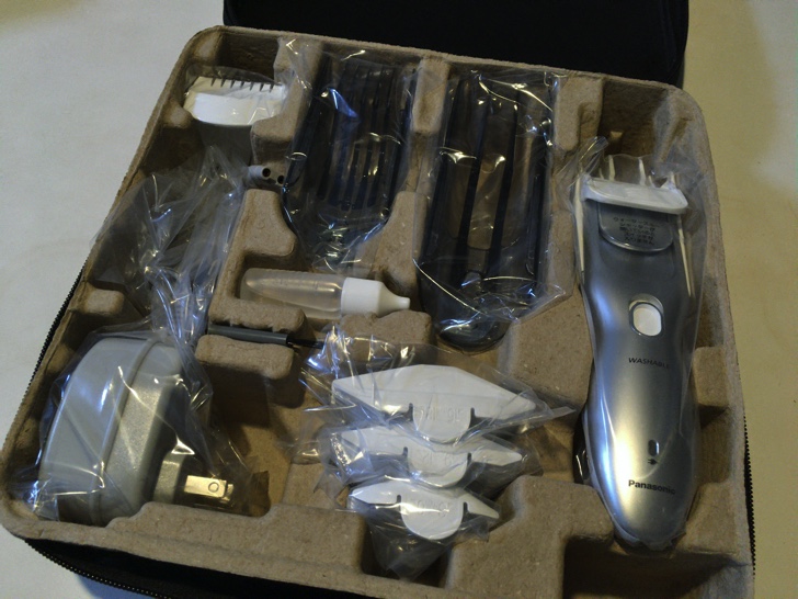 箱が意外なほど大きくちょっとビックリ。バリカン自体はコンパクトですがアタッチメントが色々付いているためかなりの大きさになってました。