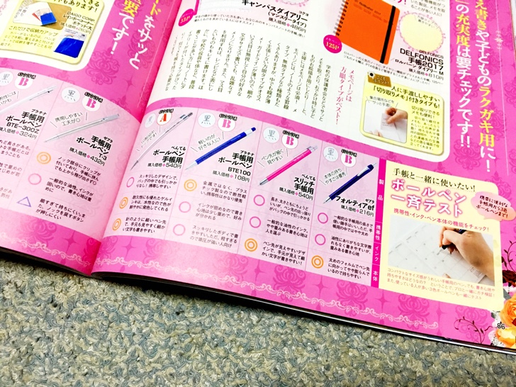 手帳用ボールペンの一斉テストが雑誌「LDK」の12月号で特集されておりました。10製品中「ぺんてるボールペン手帳用」がトップ。Aランクはこの製品のみ。この手帳にもぴったり。
