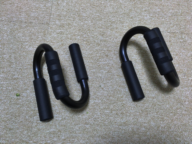 「プッシュアップバー」はアディダス製を購入。Amazonではもっと安いものもありましたがレビューを色々調べると金属製のしっかりしたプッシュアップバーの方が絶対いいと書いてあり若干高かったのですがこちらを購入しました。高いといっても2,500円前後。幅を広げると負荷が増します。