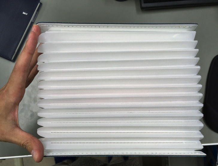 一番の特徴は蛇腹になっているため厚みをある程度まで自由自在に変更できること。ポケット毎に厚さを変えられるので、紙が多少増えて10枚になっても、1枚だけでも問題ありません。これほど便利にファイリングできるアイテムがあるとは。世の中賢い人がいるもんだと感心しました。