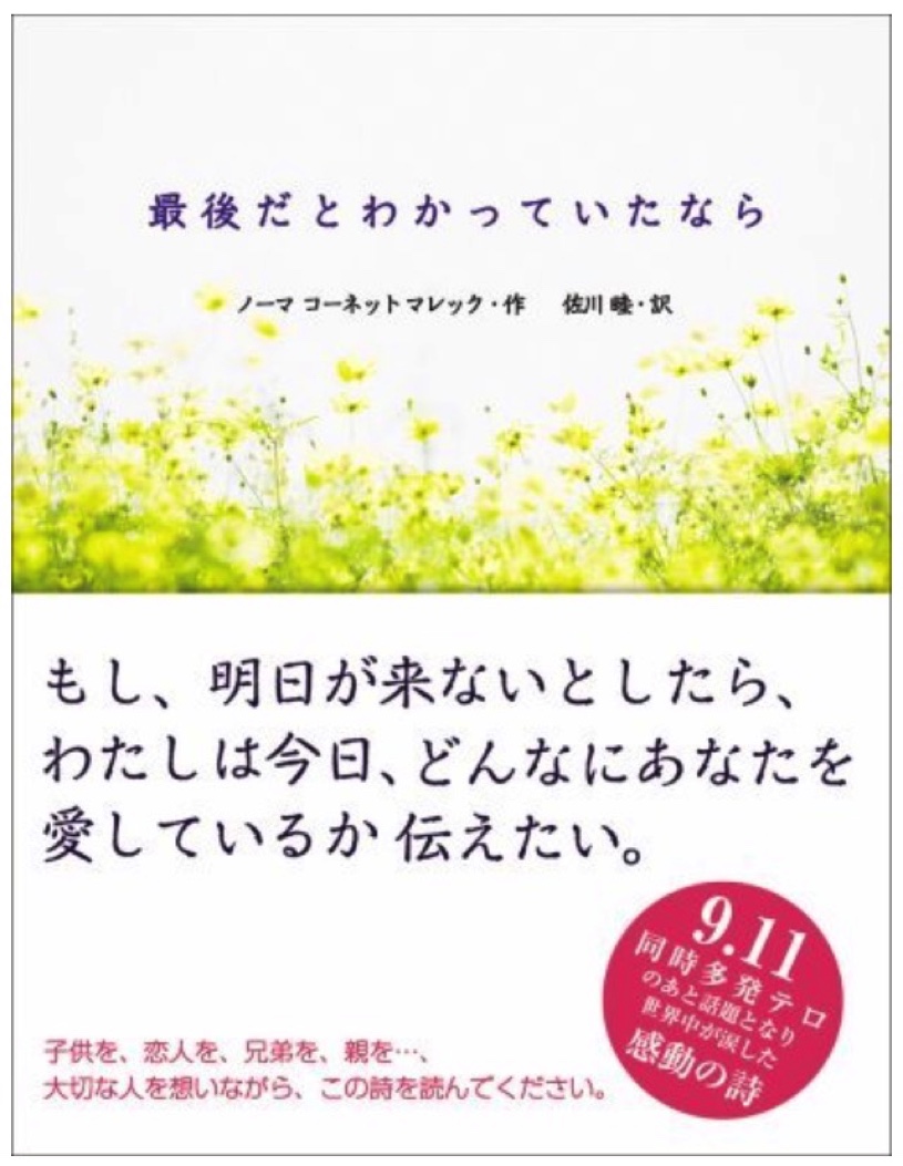 先生が紹介していた詩を転載いたします。9.11のアメリカ同時多発テロ事件の後に発表された詩ですが、今年の3月11日に岩手日報にも掲載されました。検索したら本が出ていましたので購入して読んでみようと思います。
