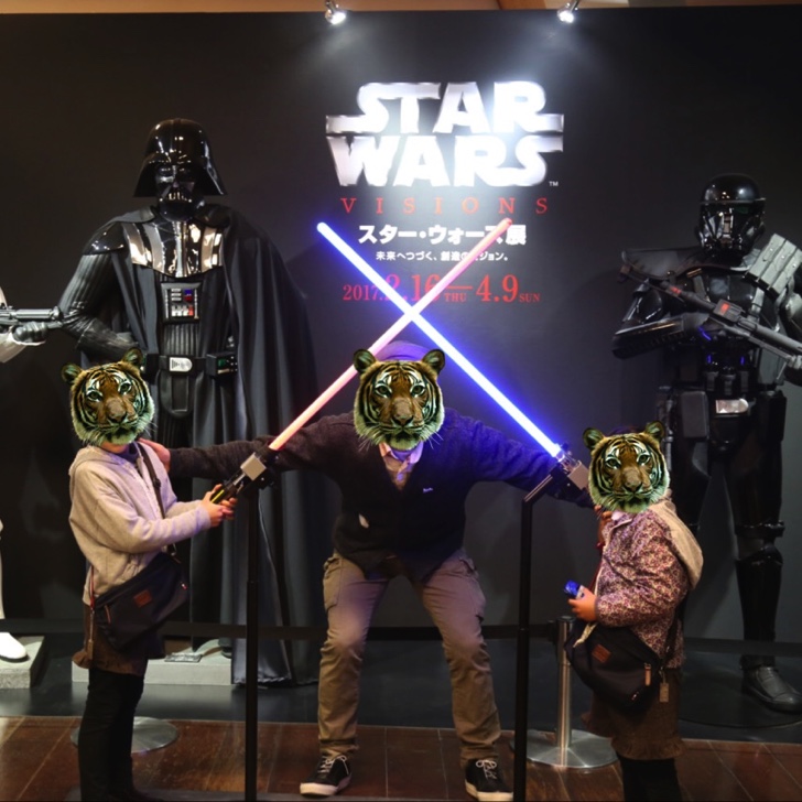 会場内は撮影禁止。スター・ウォーズのキャラクターの衣装やスター・ウォーズをテーマにした絵画、ミニチュアモデル、ライトセーバーなどスター・ウォーズファン垂涎の展示物がならんでいました。展示数は多く、じっくり鑑賞すると1時間ぐらいは楽しめます。平日ということもあり空いていて、ゆっくり鑑賞することができました。