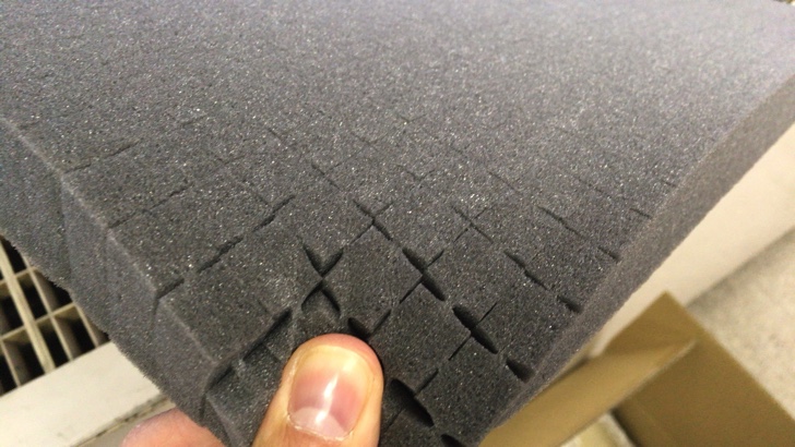 適度な弾力のあるスポンジシートでマス目状に切れ目が入っておりブロックを簡単に抜くことができます。