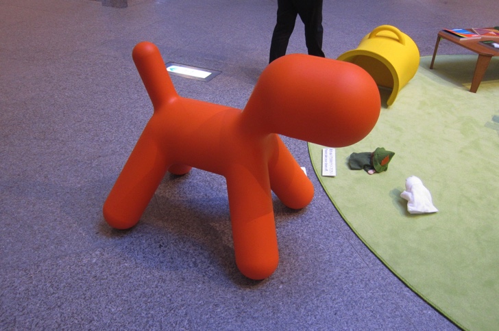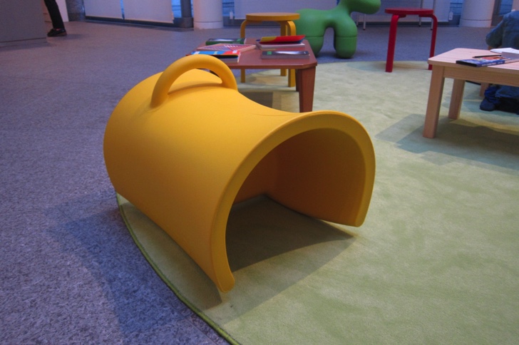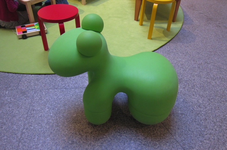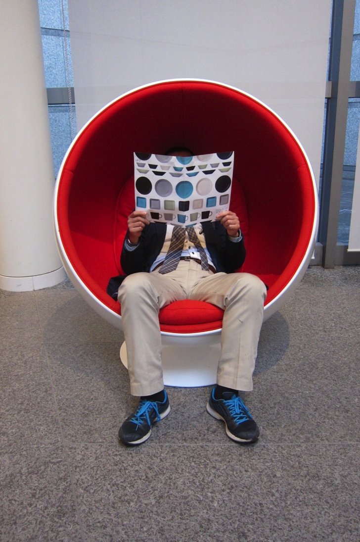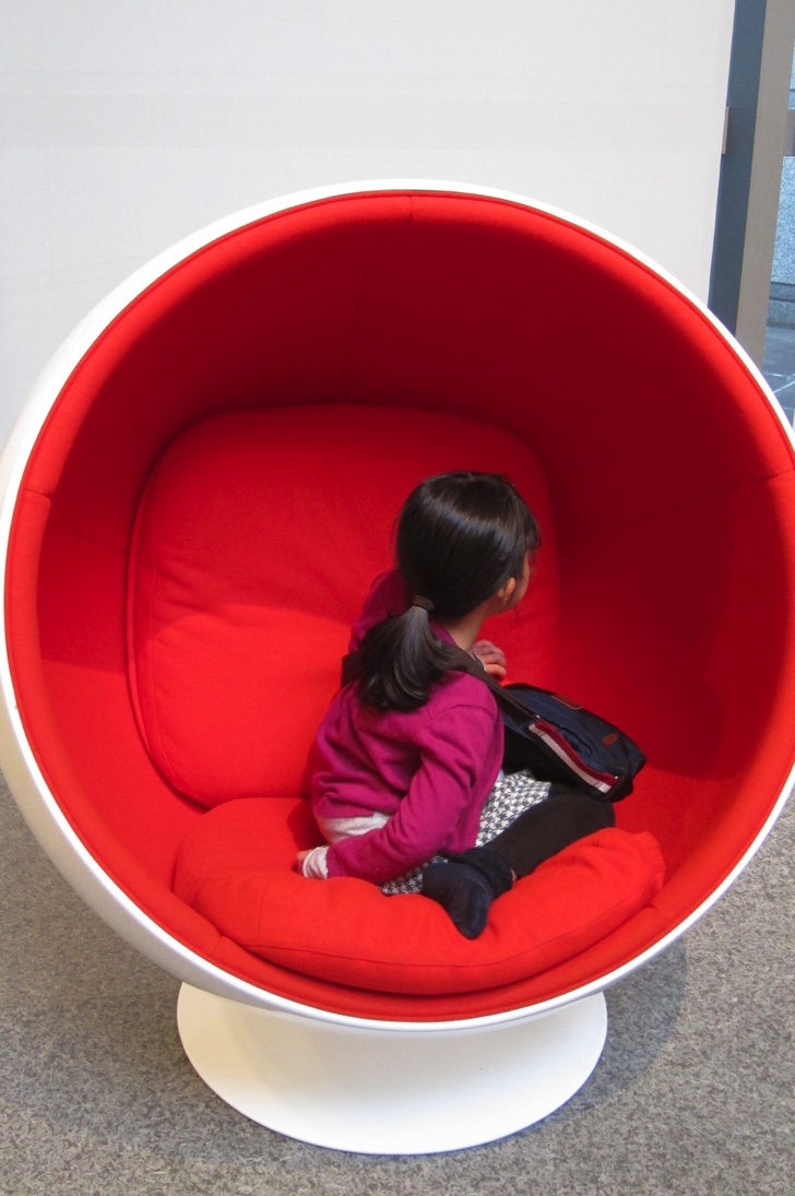 娘たちは途中から退屈になったようですが、出口を出た所にぬり絵があり、そこで楽しんでいました。またエーロ・アールニオのボールチェアが置いてあり、ここも気に入った様子。筆者も座ったことろ、周囲の音を遮断し自分の空間を作り出せるため集中して本を読んだりするには最高の椅子だと思います。