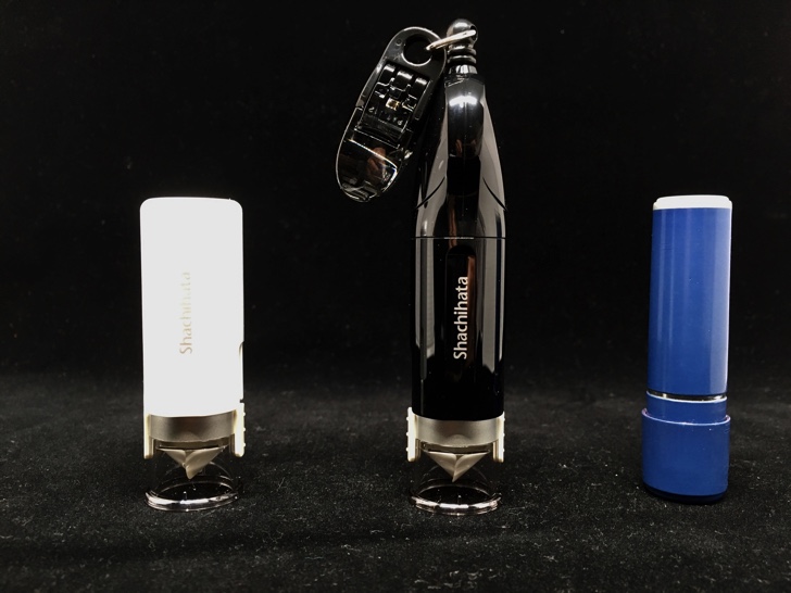 机でしか印鑑を押さないならノーマルタイプを、持ち歩く必要があるならリール付が超便利。リールが伸び縮みするので落とすことはありませんし、無くすこともありません。ポーチの中に入れていてもすぐに取り出せます。一度これを使ったら手放せなくなると思います。