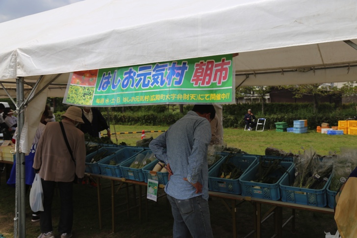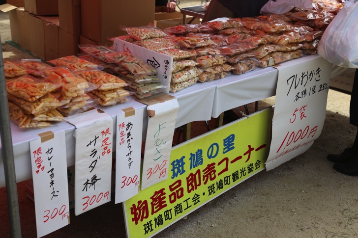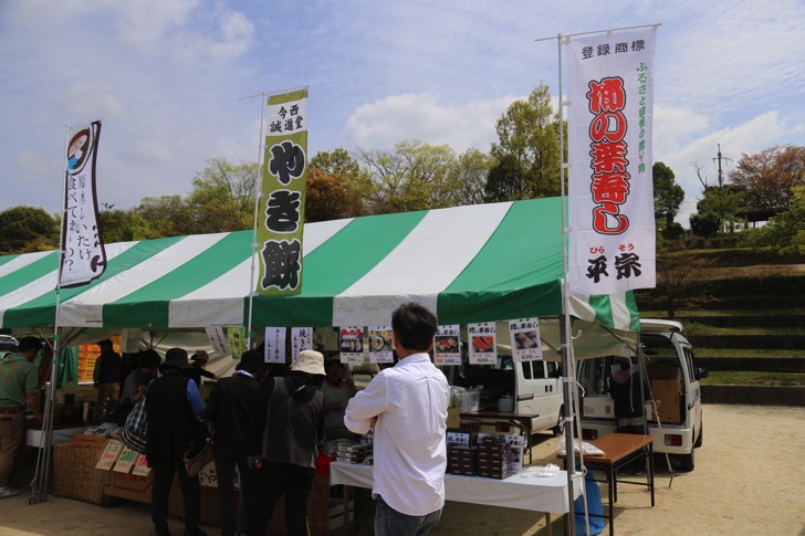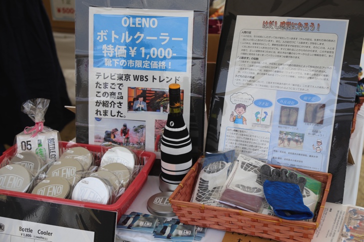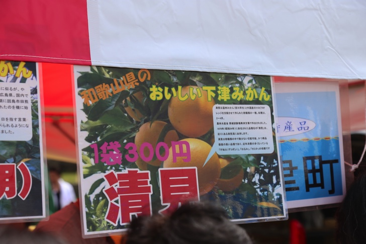 公園にはいくつものテントが張られておりブースごとに様々な店舗が出店されています。会場の半分は靴下の店、半分は地域特産品の店が軒をつられています。特産品のコーナーでは葛餅、あられ、奈良漬、柑橘類、昆布・佃煮など地元の商材が販売されています。今回はおつまみ昆布、清見みかんなどを購入。どれもお値打ちな価格で提供されています。