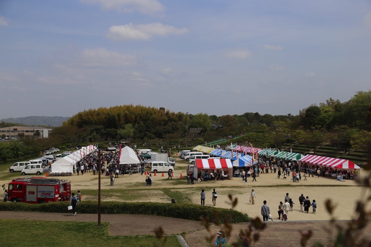 開催場所は広陵町・竹取公園みんなの広場で開催されます。車でしか行けない場所なのですが、大勢のお客さんで賑わいます。22日(土)の10時頃に訪れましたが、すでに一番近い駐車場は満車に近い状態。停めて公園へ歩いていたときには他の遠い駐車場へ案内されていました。近くの駐車場に停めたいなら、このぐらいの時間がリミット。その後は運が良ければ近くの駐車場に停められますがそれ以外は5分ほど歩くことになります。