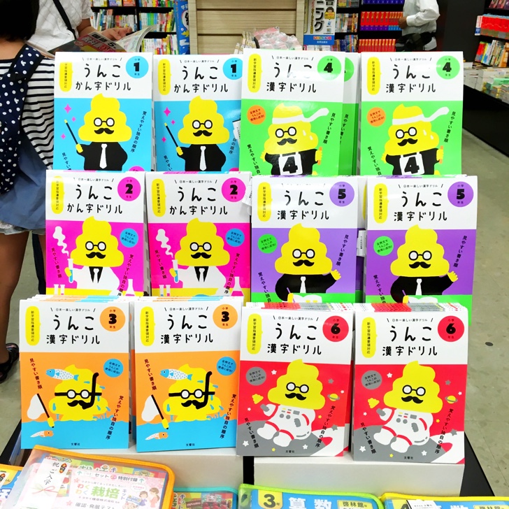 小学生の間で話題騒然の「うんこ漢字ドリル」。売切れている本屋も続出している模様。たまたま訪れた本屋は入荷したばかりで全学年揃っていましたが、それ以降行った本屋では学年によっては歯抜けになっておりました。