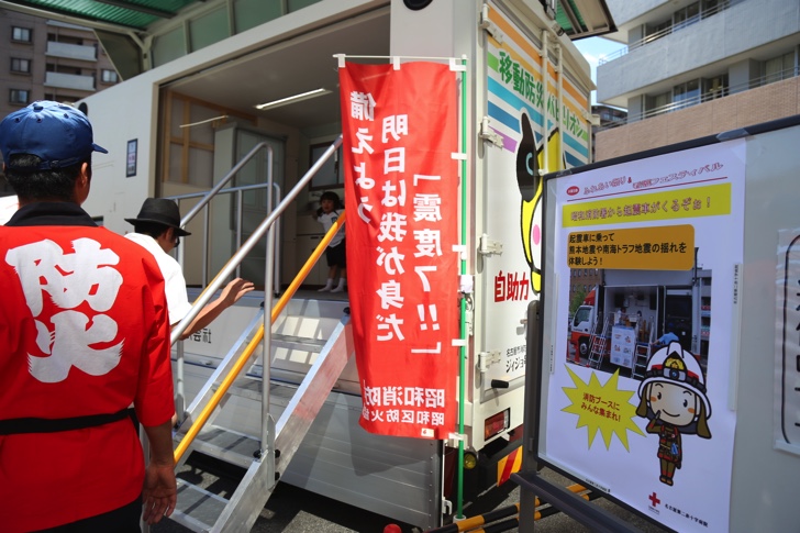 その他、防災関連として地震車に乗って震度7の地震を体験するコーナーがありました。娘はキャッキャはしゃいでましたが実際にこの揺れが来たらパニック状態になること間違いありません。これを書いている今、ちょうど地震がありました。大きな地震がないことを願っておりますが、残念ながらそのうち東南海大地震は来ると思われます。その時に備えておかなくては。