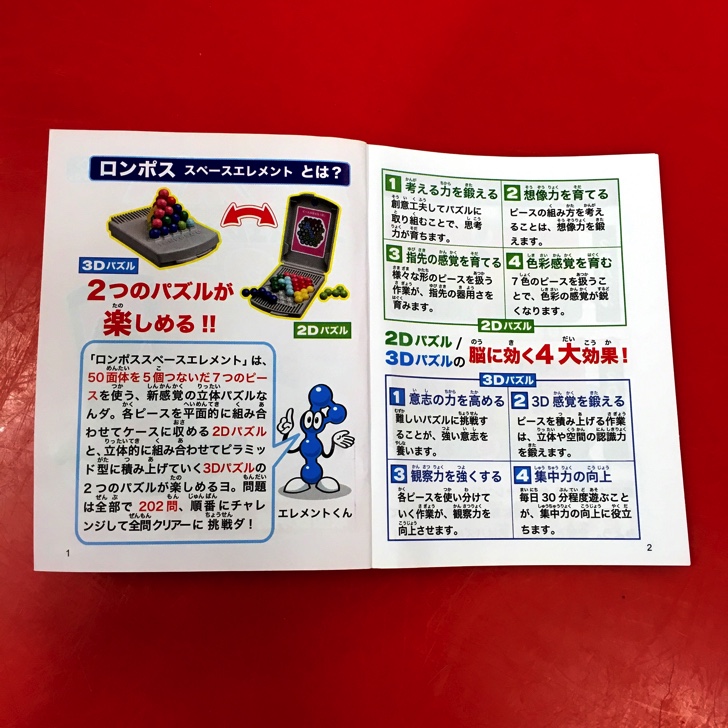 2週間ほど入院している長女が退屈らしく特にすることがないので何かパズル的なものを探していて見つけたのが「ロンポススベースエレメント202」という2D・3Dの2種類が楽しめるパズル。