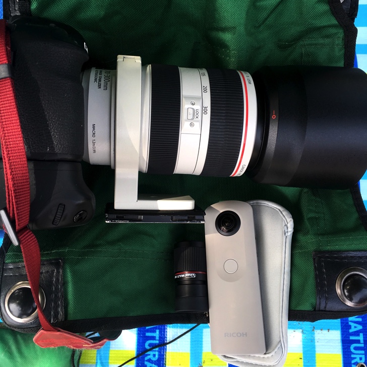ちょうど子供の運動会があったので使ってみたところ、子どもの表情までしっかり捉えることができました。70-300mnF4-5.6の望遠レンズで撮影しながらでしたが、単眼鏡の方が明るくくっきりしており見やすさは格段に上。軽いので疲れることもありません。RICHO THETASCと比較しても小さい。