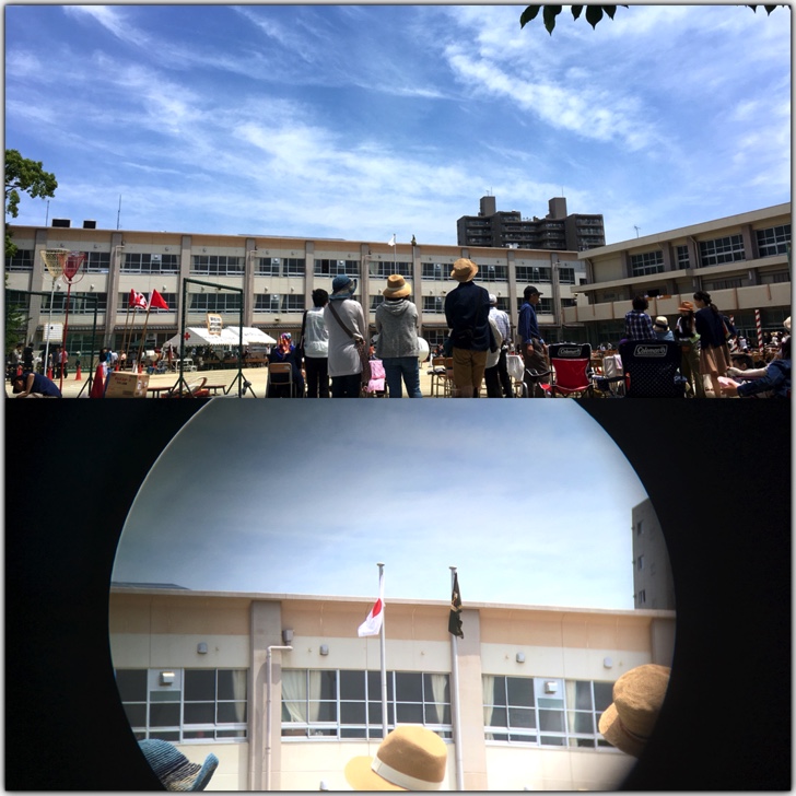 上がiPhoneでそのまま撮影した画像、下がiPhoneに単眼鏡を当てて撮影した画像。国旗を見比べていただければ倍率がわかると思います。