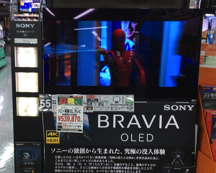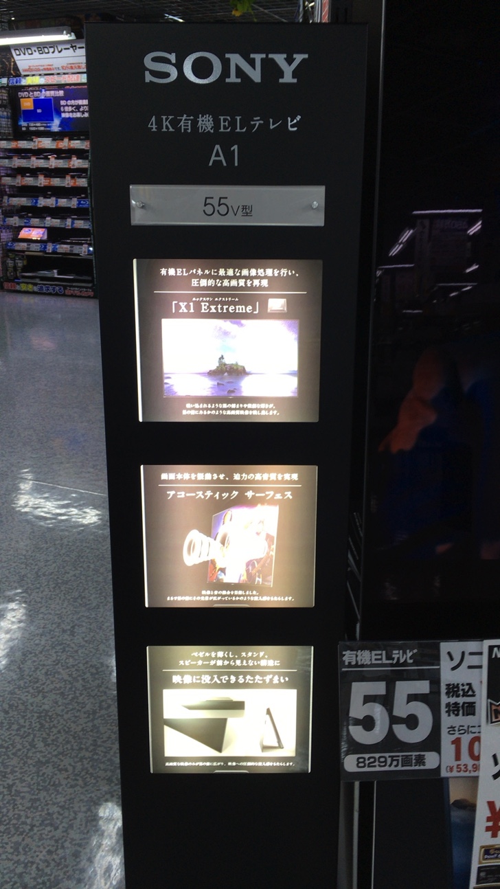 6月10日(土)発売のSONYの4K有機ELテレビ「BRAVIA A1」がすでにヨドバシカメラ名古屋松坂屋店に置いてありました。発売前から気になっていた液晶テレビで実機を一足先に見ることができました。
