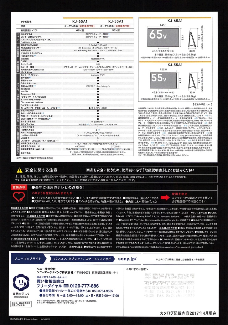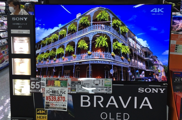 この「BRAVIA A1」は画質・音質とも素晴らしく特に黒は有機ELは素子が全く発光せず完全な「漆黒」になるため夜のシーンが多い映画などではその差は圧倒的。ただし価格が55インチで50万円オーバー。1インチ1万円とまだまだ高い。13年前液晶テレビが出始めた頃と同じ水準。もっともその当時は32インチの2Kパネルで厚があり重量も相当重く、30万円だったことを考えれば、この性能で1インチ1万円はおトクとも言えます。