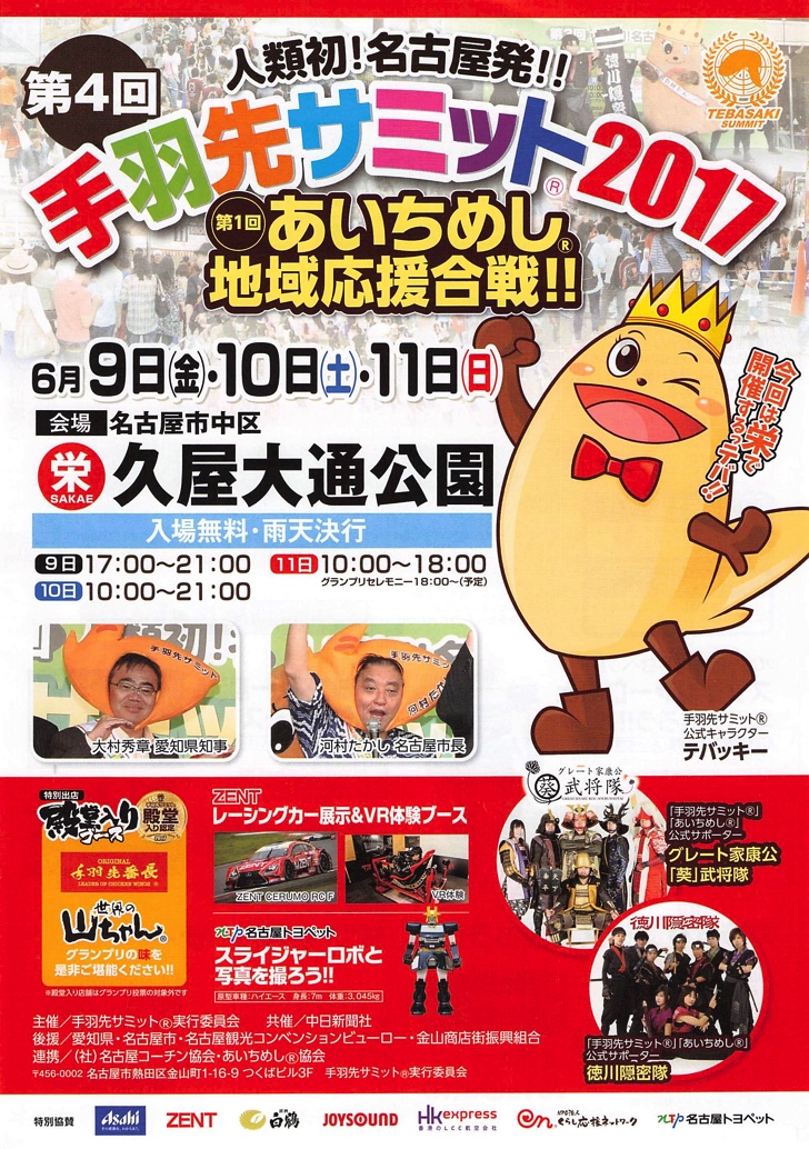 6月9日(金)・10日(土)・11日(日)に久屋大通公園で開催の第4回手羽先サミット2017&第1回あいちめし地域応援合戦!!へ行ってきました。職場のすぐ横が久屋大通公園なので何かイベントを開催している時は会社の帰りに立ち寄っています。