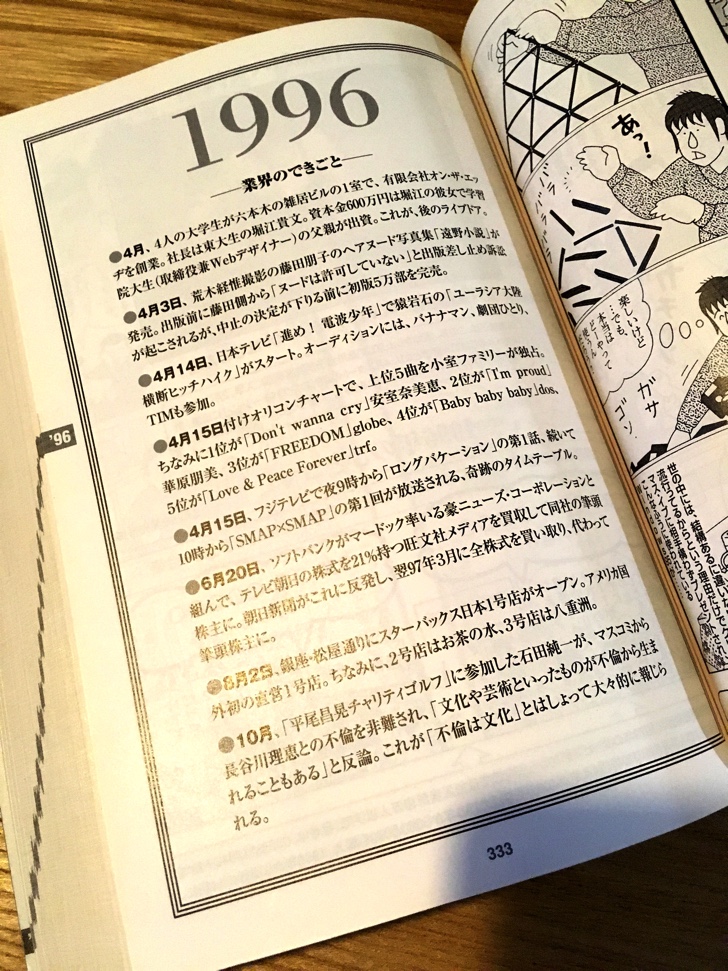 その他の年も懐かしい出来事がたくさんあり、アラフォーから上の世代なら30年分、アラサーの年代なら20年分は理解できて、それより前の知らない時代も楽しめます。