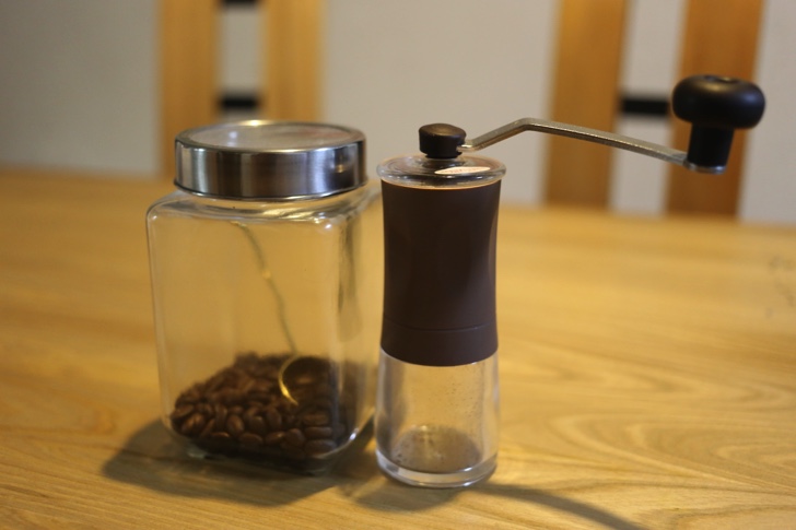 自宅でも美味しいコーヒーを飲むために道具を一式揃えました。ミルやポットはそこそこの値段がしましたが、每日使っているのでもう元は取りました。毎朝、豆を挽いてコーヒーを淹れる時間はとても楽しいひととき。