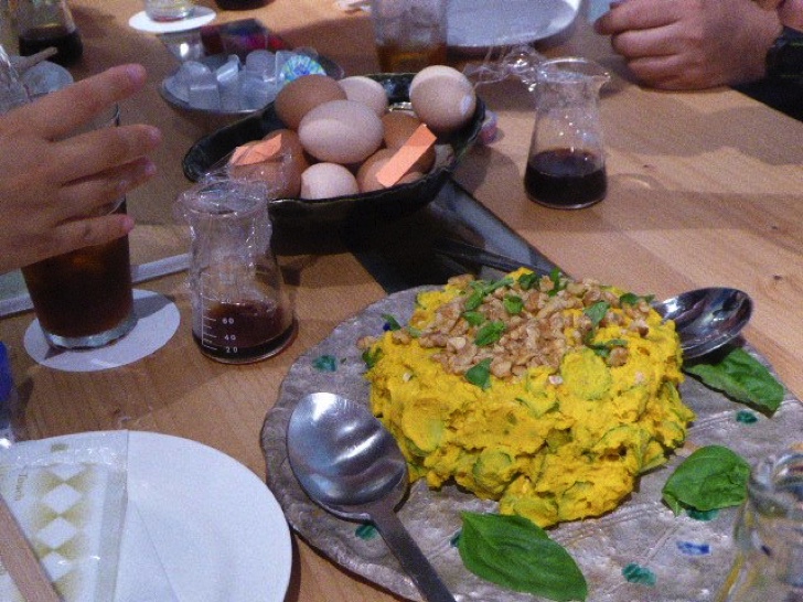 今回の会場となった「NO DETAIL IS SMALL」ではトースト、ゆで卵、カボチャのサラダ、トニックコーヒー、バナナ、スイカをいただきました。