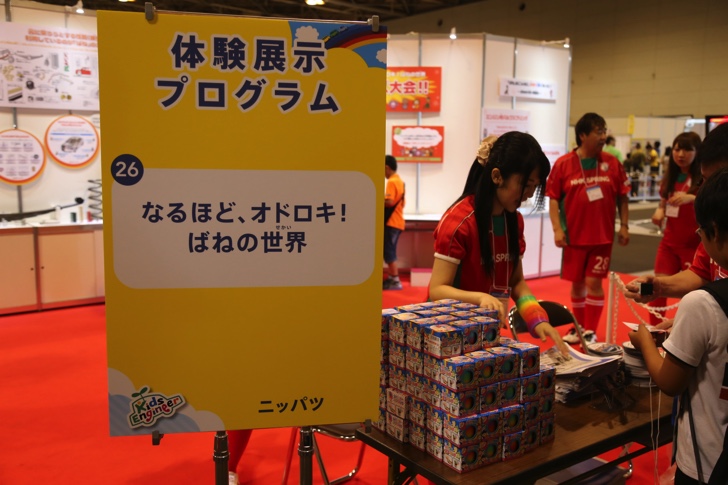 屋内の体験イベントでは次世代バスの展示やバネやゴムの特製を学ぶコーナーがありました。