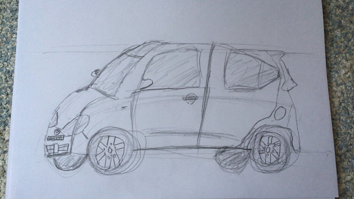 その後、若手デザイナーの秋山氏による講習会があり、スケッチのコツを伝授いただきました。ポイントはタイヤの大きさを基準として縦横の大きさを決めるということ。タイヤの位置をきちんと決めて車高の高さを決めればだいたい上手く描けるとのこと。
